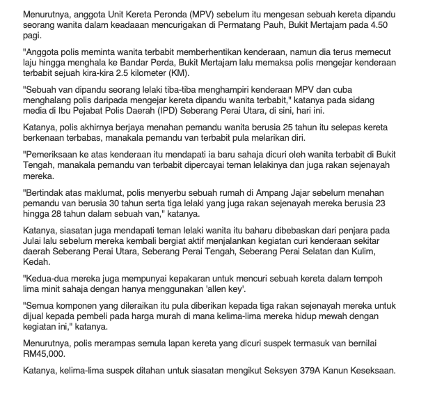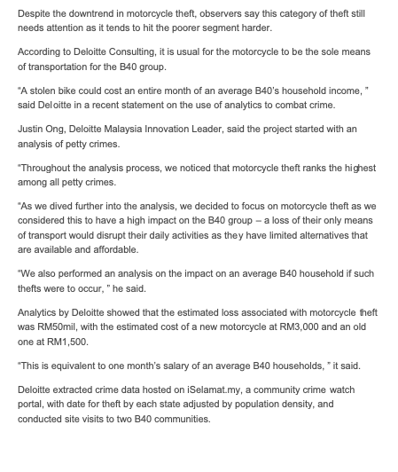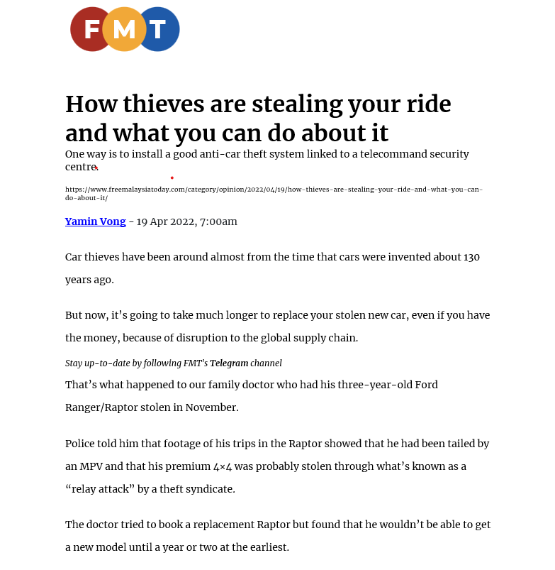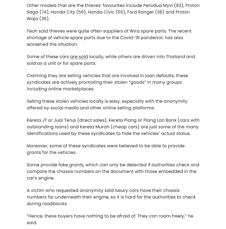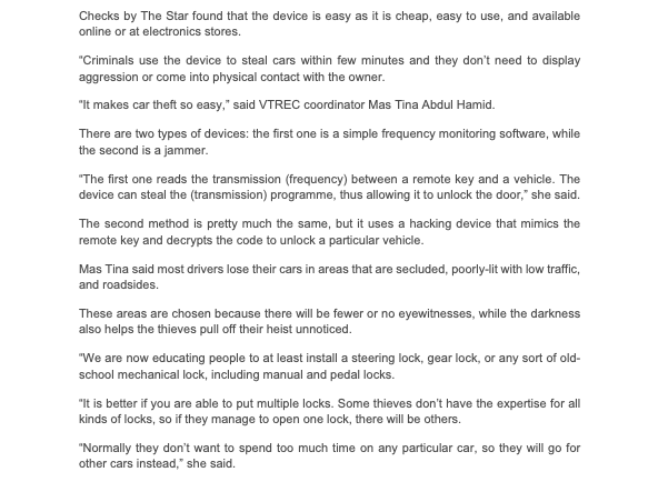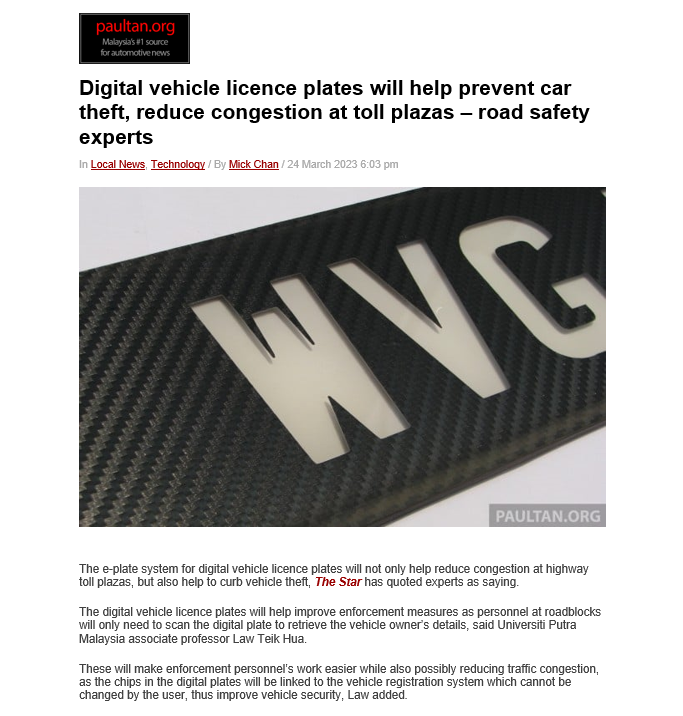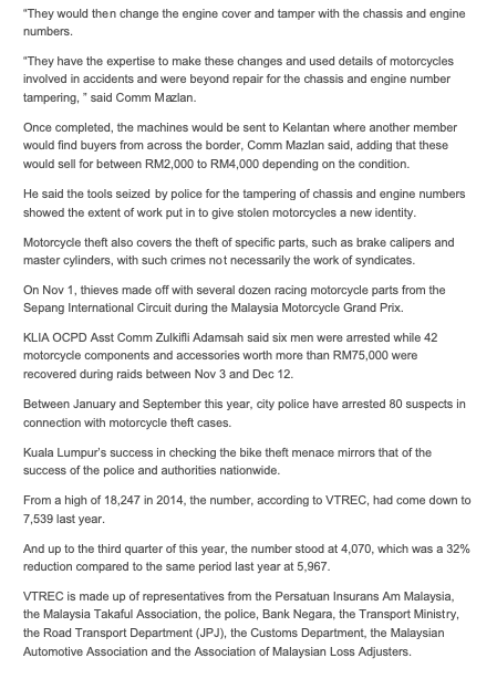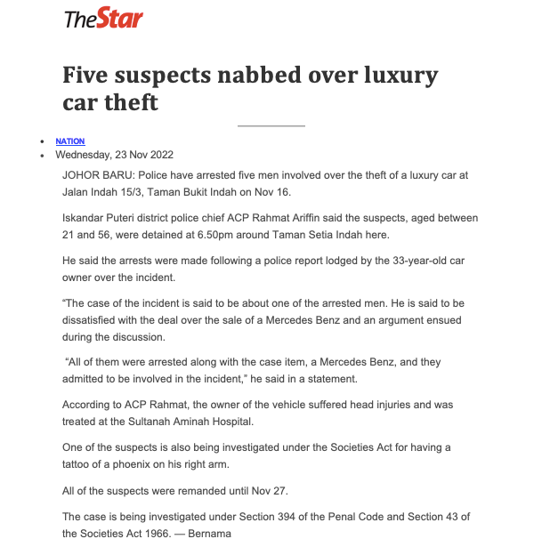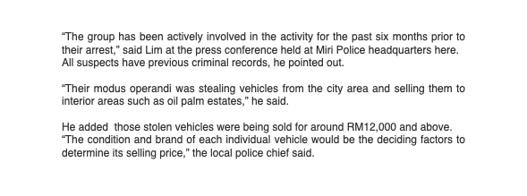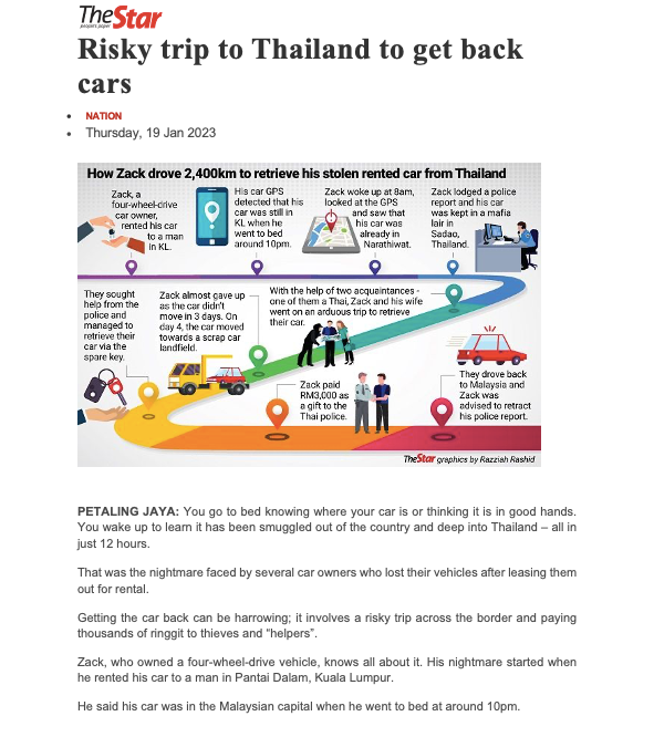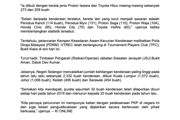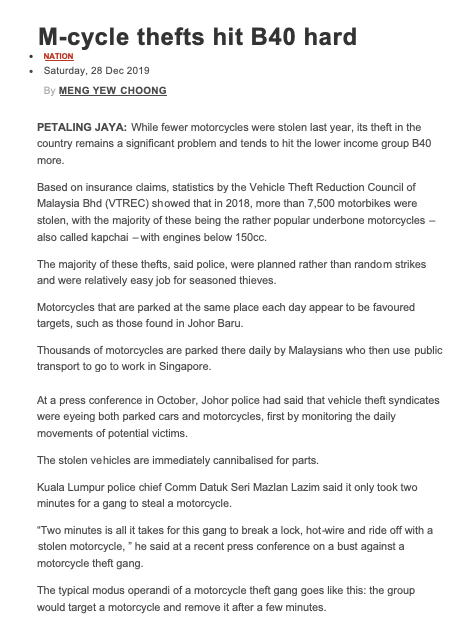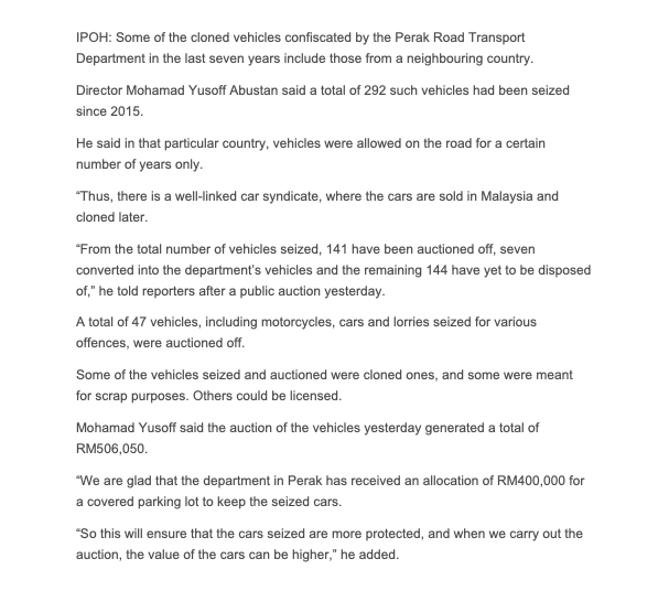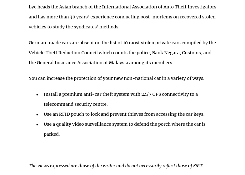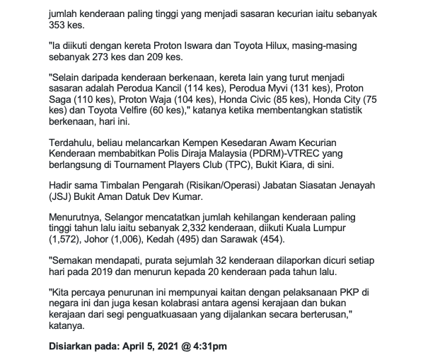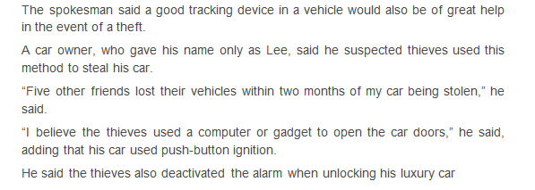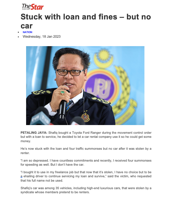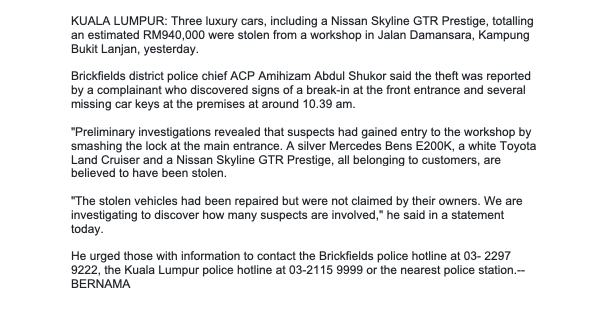 - “The different views of crime” – Malaysian car theft reduced by 20%