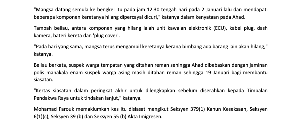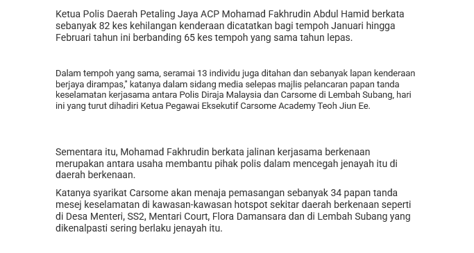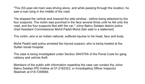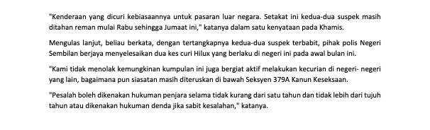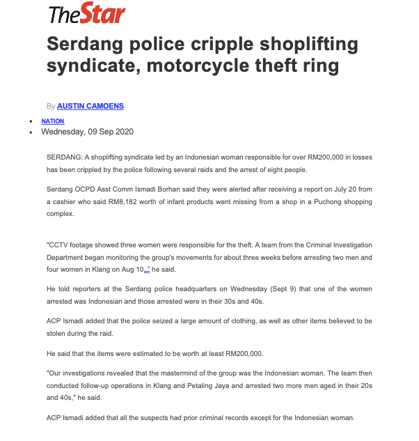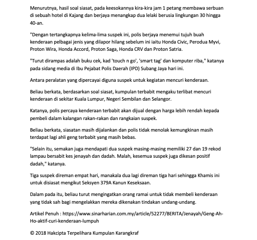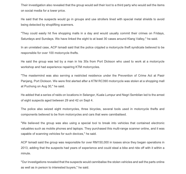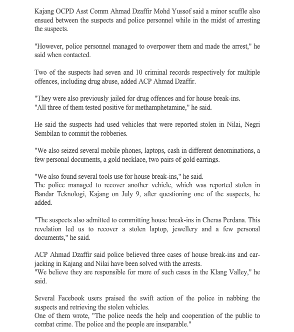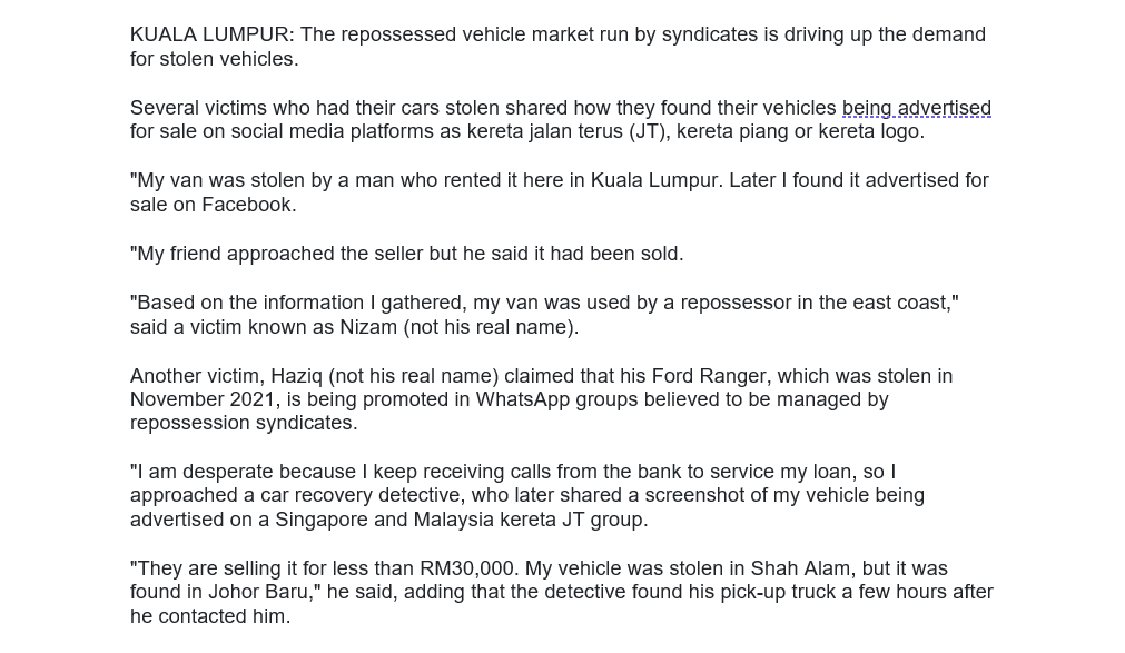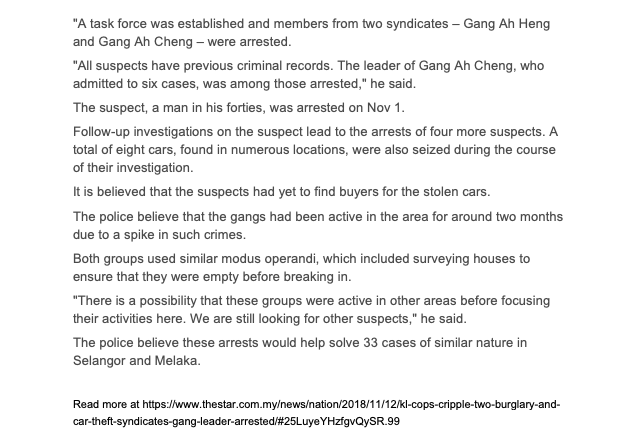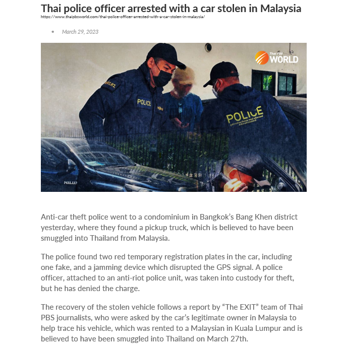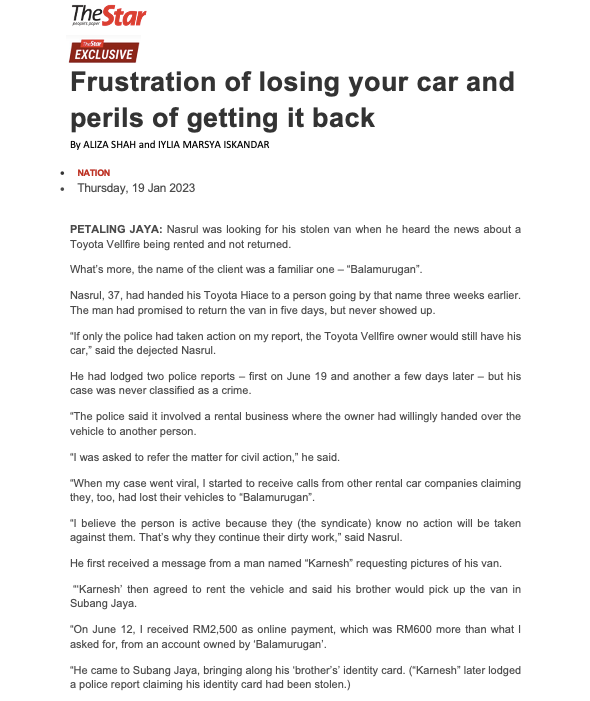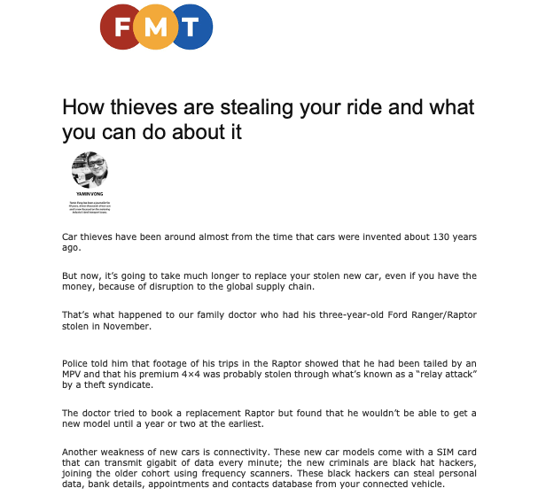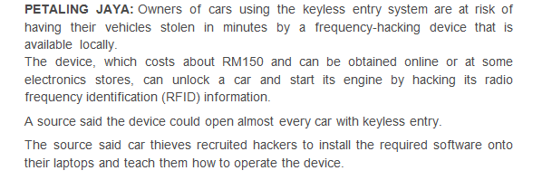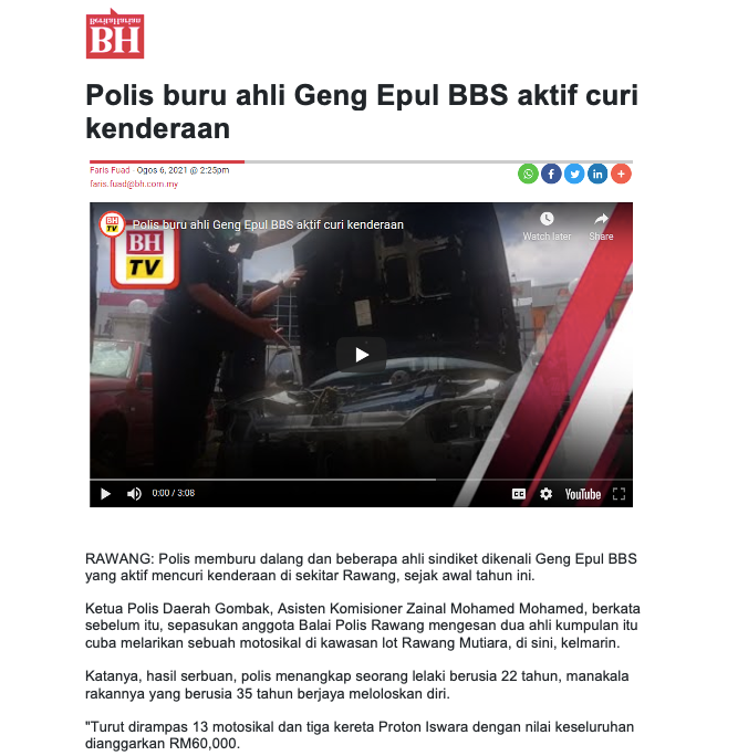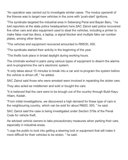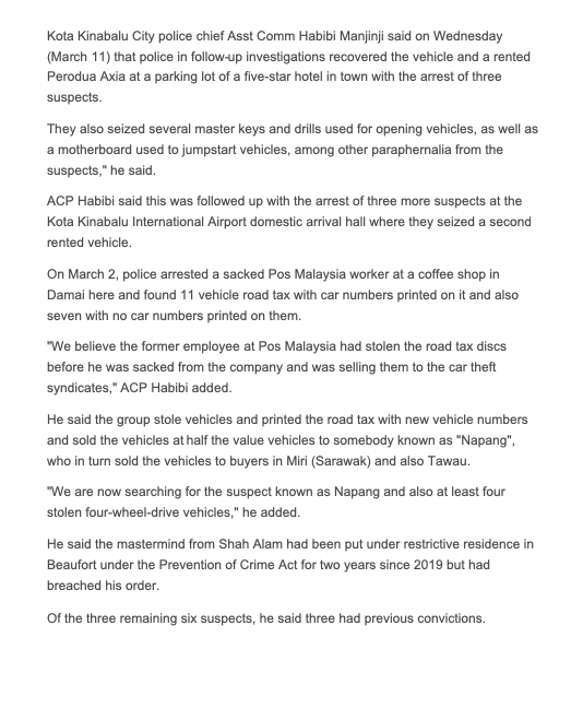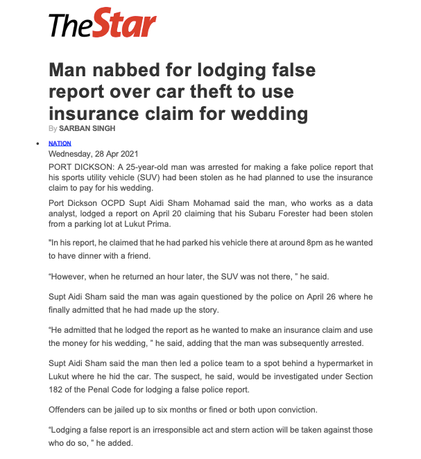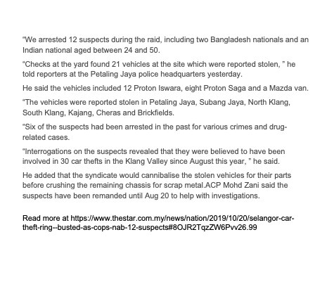 - “The different views of crime” – Malaysian car theft reduced by 20%