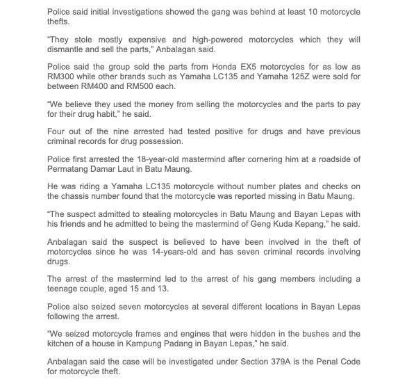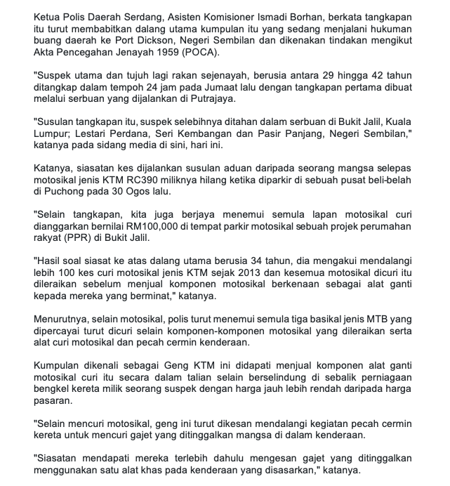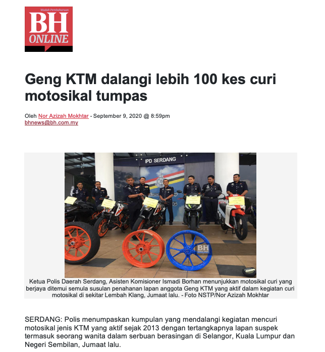 Geng KTM dalangi lebih 100 kes curi motosikal tumpas