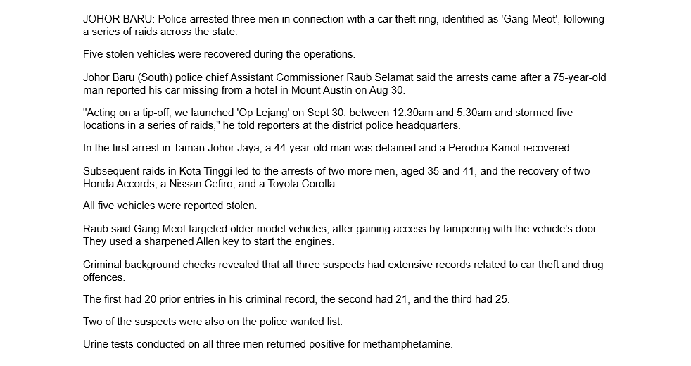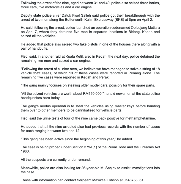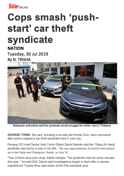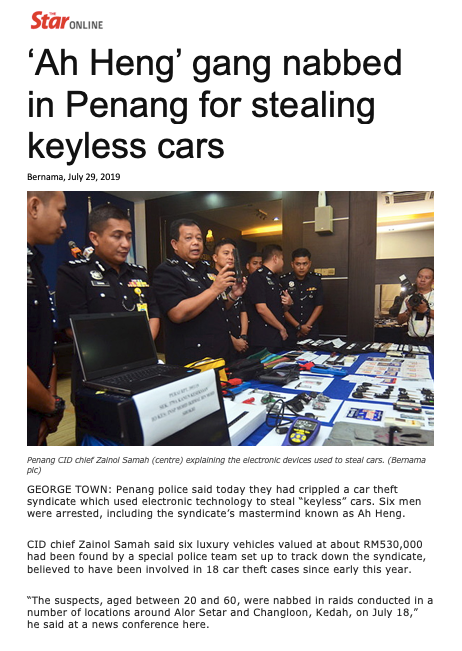 Ah Heng gang nabbed in Penang for stealing keyless cars
