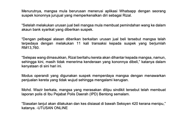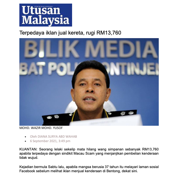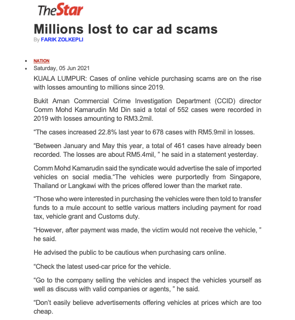 Terpedaya iklan jual kereta, rugi RM 13,760