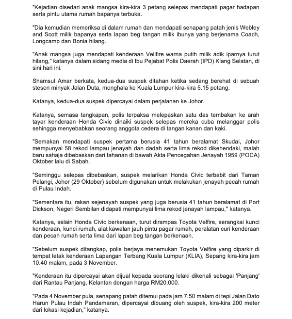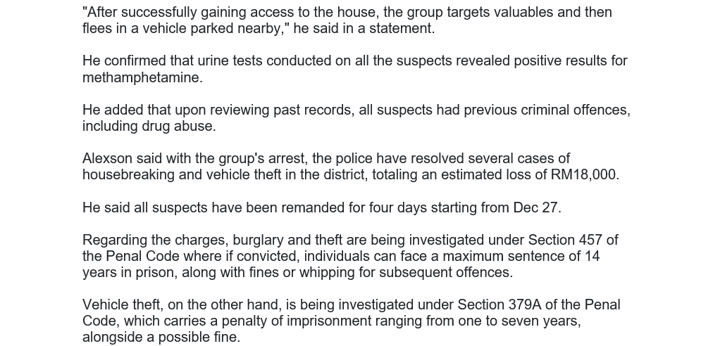 Cops bust robbery gang behind spate of break-ins and car thefts in Klang Valley
