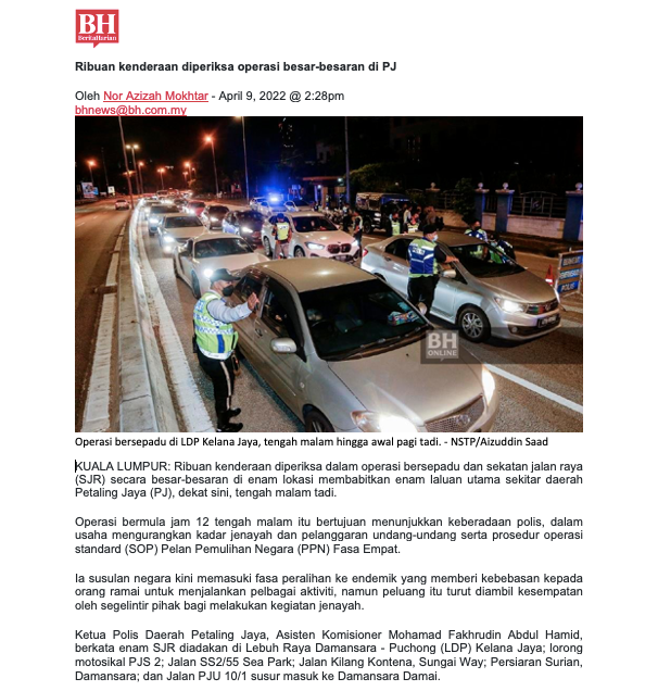 Ribuan kenderaan diperiksa operasi besar-besaran di PJ