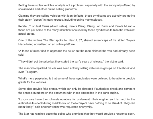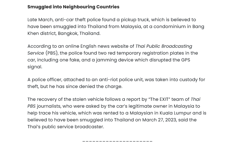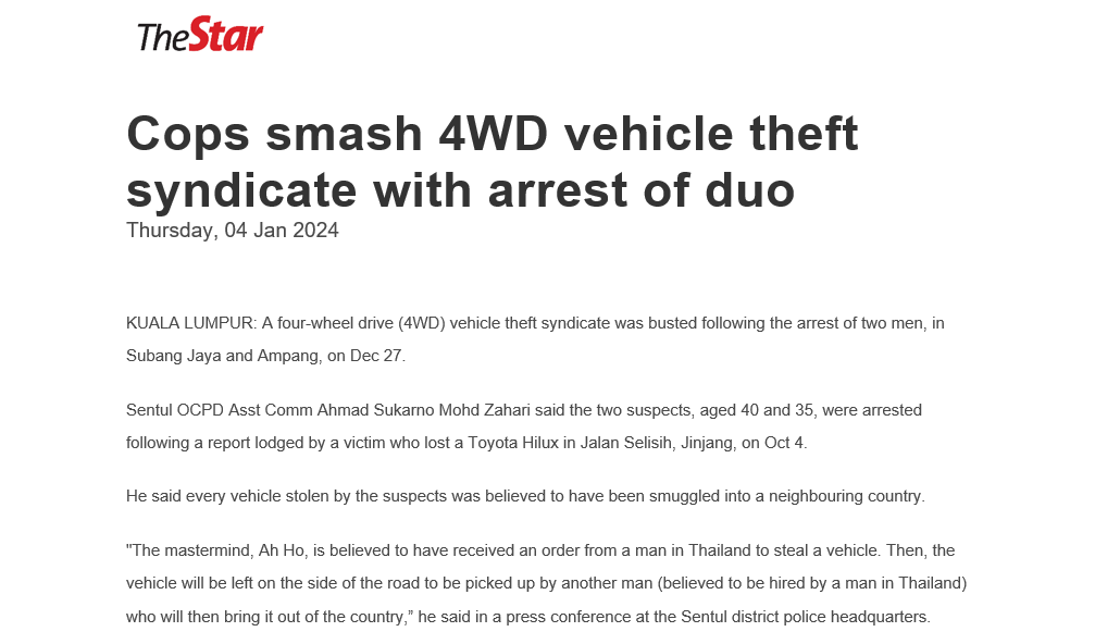 No Big Syndicate Involved In Vehicle Theft In Malaysia – Police