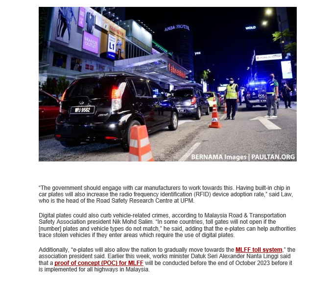 Digital vehicle licence plates will help prevent car theft, reduce congestion at toll plazas – road safety experts