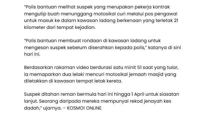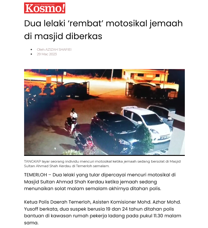 Dua lelaki ‘rembat’motosikal jemaah di masjid diberkas