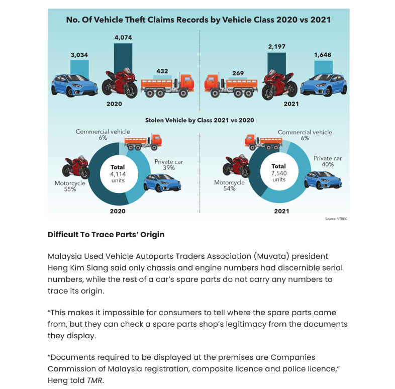 One vehicle stolen every one hour 15 minutes in Malaysia, says vehicle theft reduction council